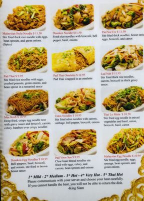 Authentic Thai street food restaurant. Due to the shortage in the supply chain we currently do not have green bean noodles. The staff at King Siam Thai Cuisine is devoted to serving customers mouthwatering dishes that feature the highest quality ingredients available.